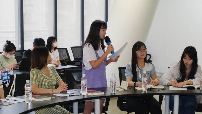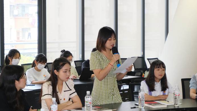 结合学习习近平总书记在中国人民大学的重要讲话精神后的体会,2021级专硕班的卢千菊分享了自己的感受:作为新时代青年,应该把握一切能为社会,为国家贡献力量的机会,自觉承担时代责任,向无数英雄先辈们一样,为了心中坚定的理想信念,甘愿赴汤蹈火,敢于争先,一往无前,为实现中华民族伟大复兴而接续奋斗!