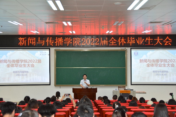 会议伊始,唐兴书记围绕“大学四年学到了什么?”、“如何向就业单位推荐自己?”、“如何先就业,再择业?”三点向同学们分享自己的看法和经验,并与同学们进行互动。在向同学们提出 “学习新闻传播给你带来了什么?”的问题时,2019级专硕班鲍精华同学认为,学习新闻传播,让他学会观察的同时也提升了认知和分析能力,变得更认真也更有自信。最后,唐兴书记对全体毕业生们提出建议,希望同学们在就业时要有自己的判断,找准自己的定位,并预祝全体毕业生前程似锦。