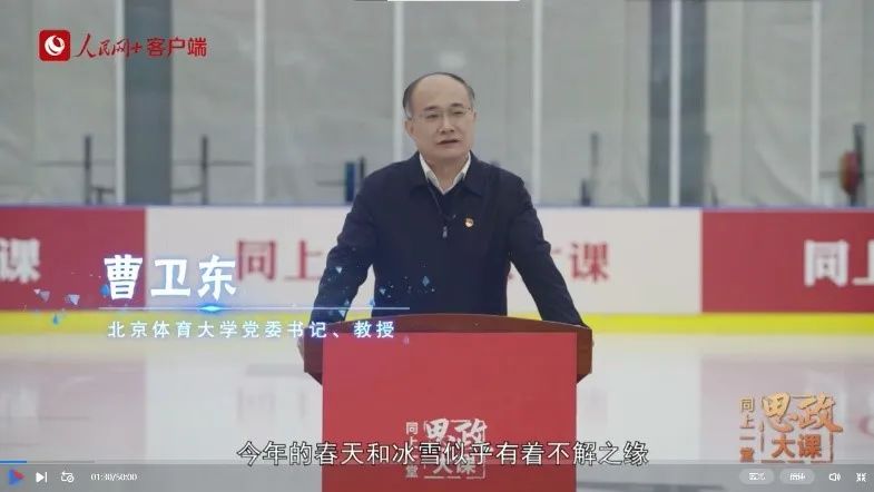 下午14时,网络学习准时开始。首先,北京体育大学党委书记、教授曹卫东带领大家回忆了我们国家的冬奥之路。