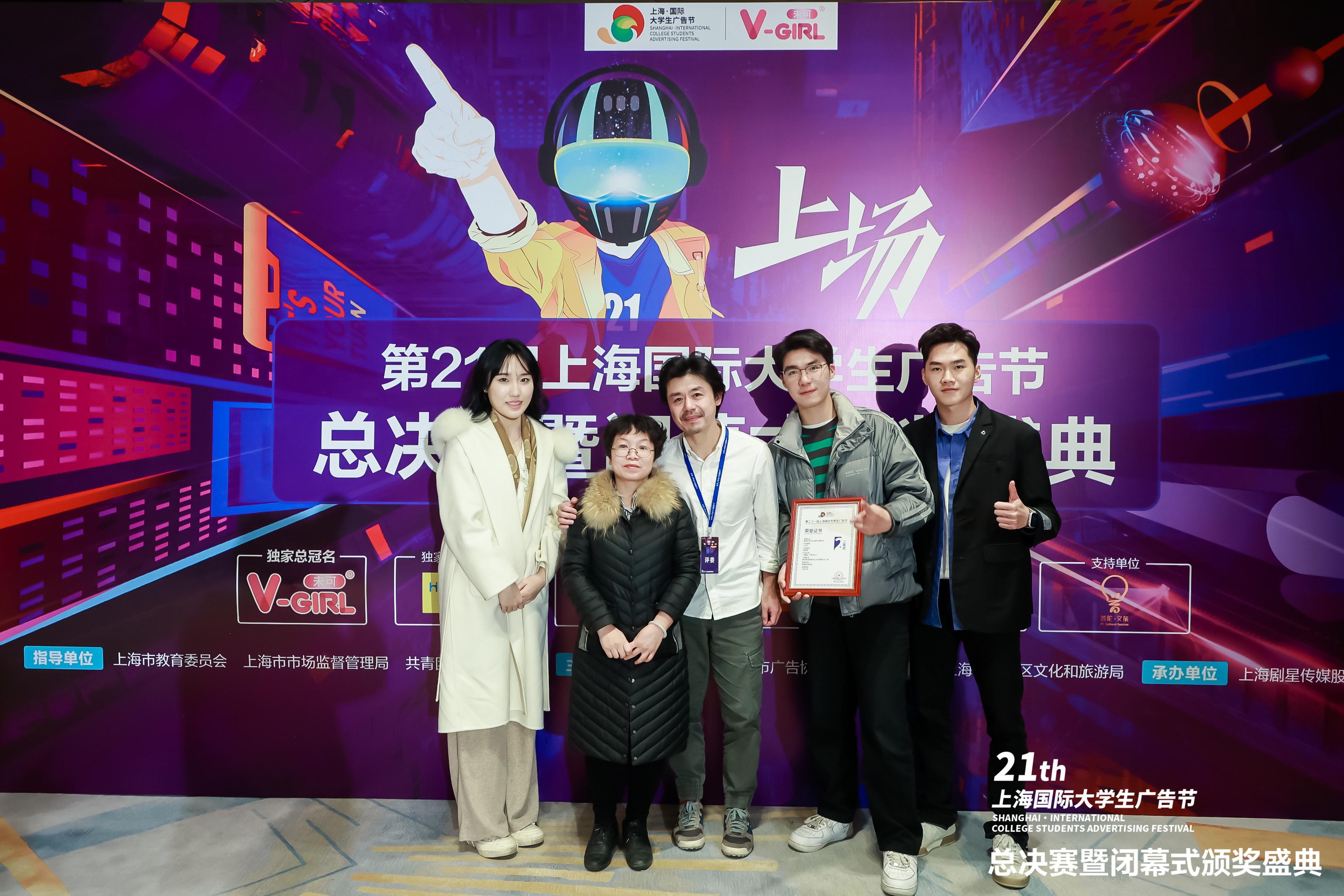 2023年2月24日周五,第21届上海国际老员工广告节总决赛圆满结束,由DB真人旗舰广告与传媒经济系副主任黄海珠副教授、公司实验室黄志宏老师指导,由播音专业员工为主力创作的视频类广告作品《醒着终会有光》喜获全国二等奖,创作组员分别为播音201班黄柏畅、播音201班陈明楷、播音201班张筱莉、播音201班苏之幸、播音201班王一茹和电气214班祝子俊。这是DB真人旗舰集团首次进入该项赛事的决赛,并获得全国二等奖的好成绩。