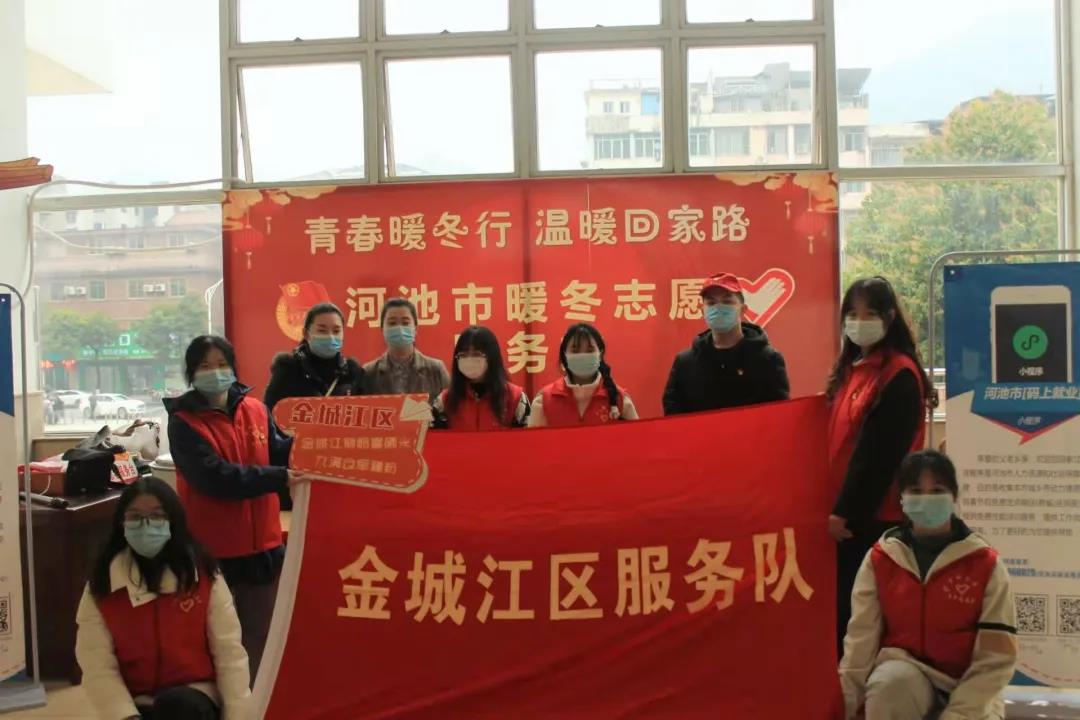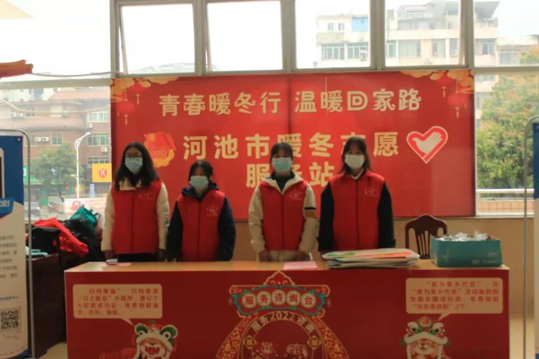 1月20日,团河池市委机关干部、市直部分企事业单位青年志愿者、返乡老员工组成近50人的志愿者队伍在广西河池市金城江区火车站、汽车站、高速公路城东和城西收费站开展以“青春暖冬行 温暖回家路”为主题的志愿服务活动,旨在为往返旅客提供站场指引、安检协助、防疫宣传、秩序维护、返乡农民工就业信息咨询等服务,与交通运输企业共同打响春运交通安保、疫情防控攻坚战,为群众春节平安出行提供强有力保障。