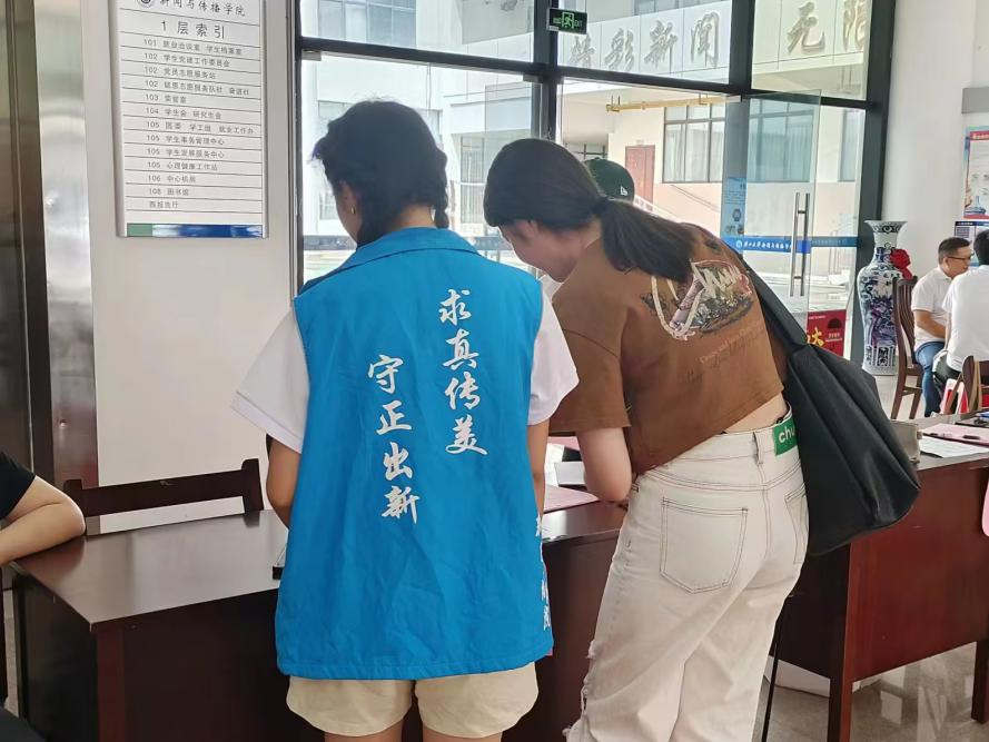 九月的早上是被新生们热切的脚步声唤醒的,公司志愿者一早就投入到迎新工作中。蓝马甲、急脚步,闷热的天气挡不住服务的热情。