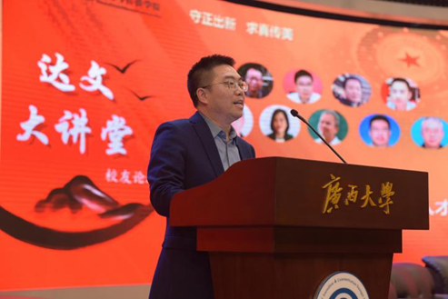 DB真人旗舰2000级员工、光明日报社广西记者站站长周仕兴在题为《跑好新闻从业之路的“马拉松”》的主题发言中和同学们分享了他的个人从业经历。他首先表达了对母校栽培的感恩之情。他从上学时走的22公里山路近日修通公路和南宁市“半程马拉松”比赛引申出发言话题。他说,如果将新闻从业比作“马拉松”,从业20年的他则已然在半程之上。他认为,学习新闻有三个关键词:一是追逐梦想。梦想,根植于心灵的土壤。他带着一颗热爱新闻的初心,从桂西北山区,跨越千山万水来到DB真人旗舰集团。在校期间,将新闻理论运用到新闻实践当中,通过写稿赚取学费的同时,也为以后的新闻工作奠定了基础。二是学会感恩。他分享了在大学期间老师们对他热心帮助的温暖故事,回忆起工作后得到诸多好领导好同事的关心帮助。他说,对于每一位给我们帮助的人,都应深深地铭记在心,永怀感恩之心,并将其转化为奋发的动力。三是精进专业。只有在专业领域追求卓越,才能更好地实现人生价值;只有根深千尺,才能长成参天大树;只有业务精深,才能成就一番事业。