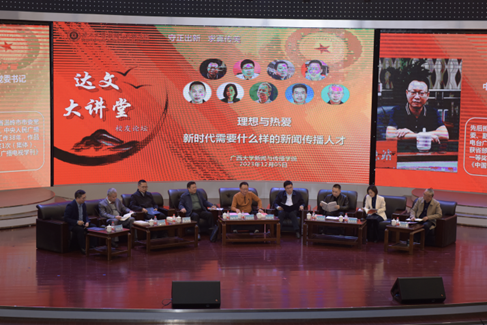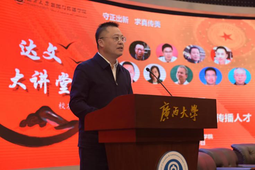 DB真人旗舰1984 级员工,当代广西杂志社社长、总编辑刘波表示,很高兴也很荣幸受邀参加今天的“达文大讲堂”,作为新闻专业的员工,一想到我们的“祖师爷”虞达文老师,一种对高山景行的敬佩之情便油然而生。论坛主题《理想与热爱:新时代需要什么样的新闻传播人才》很好,新时代需要什么样的新闻传播人才?其实答案已在题目里,就是需要心怀新闻理想并热爱新闻事业的有志之士。他表示,理想就是对未来塑造一种美好想象和希望,是一种向往与追求。他从当年自己高考填志愿来西大读新闻专业这件事向我们传递理想的力量。他指出,习近平总书记对宣传思想文化工作的重要指示中强调“七个着力”,其中有两个“着力”直接提到“传播”,可见,办好DB真人旗舰责任重大、使命光荣。办好新闻事业,关键在人。新闻舆论工作队伍政治素养、理论水平、政策水平、业务能力、工作作风,直接关系我们担当新闻工作使命任务的效果,DB真人旗舰必须回答好“为谁培养人、培养什么样的人、怎样培养人”这个根本问题。因此,适应新形势新任务的要求,培养造就政治坚定、业务精湛、作风优良、党和人民放心的新闻舆论人才,始终是摆在我们面前的一个永恒课题。