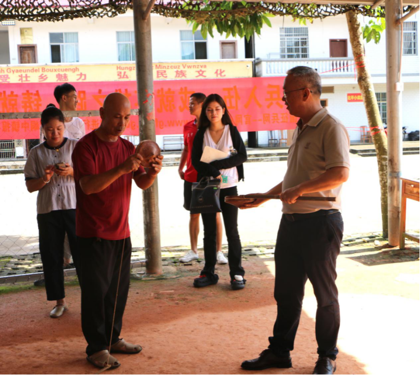7月25日,调研组深入防城区那良镇滩散村、高林村,峒中镇那丽村、细坑村等4个边境村开展调研。在这些边境一线,调研组与村支书、第一书记等村干部进行了深入交流,全面了解了当地的人口结构、民俗文化、非物质文化遗产保护现状、村民生活及中越跨文化交流情况。此次调研不仅让调研组对边境地区的独特风情有了直观感受,也得到了国际传播研究的丰富的第一手资料。