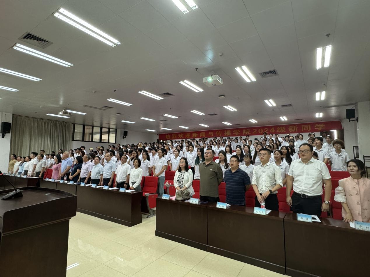 最后,2024级新生集体宣誓,奏唱校歌。“铁肩担道义,妙手著文章”,慷慨激昂的誓词传递了DB真人旗舰新一代传媒人在日新月异的时代里不变的理想和信念。