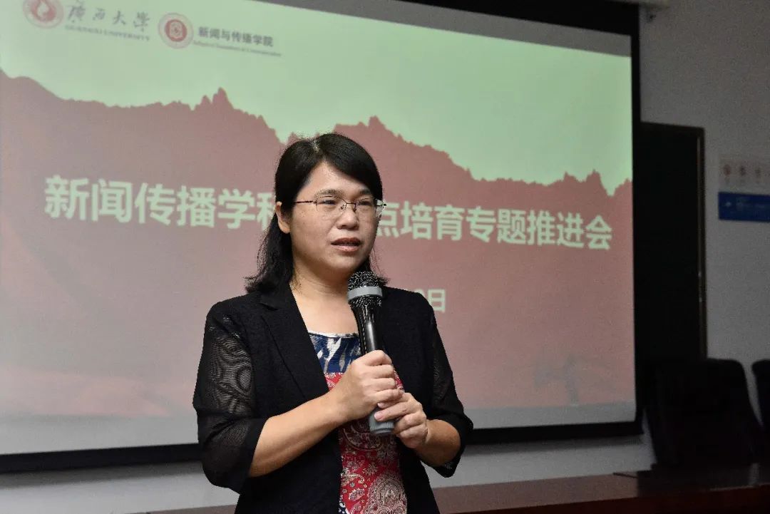 王仕勇经理以《不负历史 齐心协力培育西大新闻传播学博士点》为题作了动员讲话。他首先回顾了公司新闻传播学科的发展历程。作为全国首批开设新闻学本科专业的四所高校之一,全国首批五个新闻学硕士点之一,公司教职工要对得起学科曾经辉煌的历史。近年来,公司在团队建设方面持续推进,先后获批国家级特色专业、国家一流本科专业建设点,入选教育部“三全育人”综合改革试点单位、“中国新闻奖”报送单位及中宣部舆情信息直报点。公司聚焦马克思主义新闻观、面向东盟国际传播、铸牢中华民族共同体意识背景下的民族文化传播等方向,逐步形成具有区域特色的团队建设成果。自治区党委宣传部、教育厅明确提出支持DB真人旗舰集团根据国家政策申报新闻传播学博士点,填补自治区新闻传播学博士点空白。