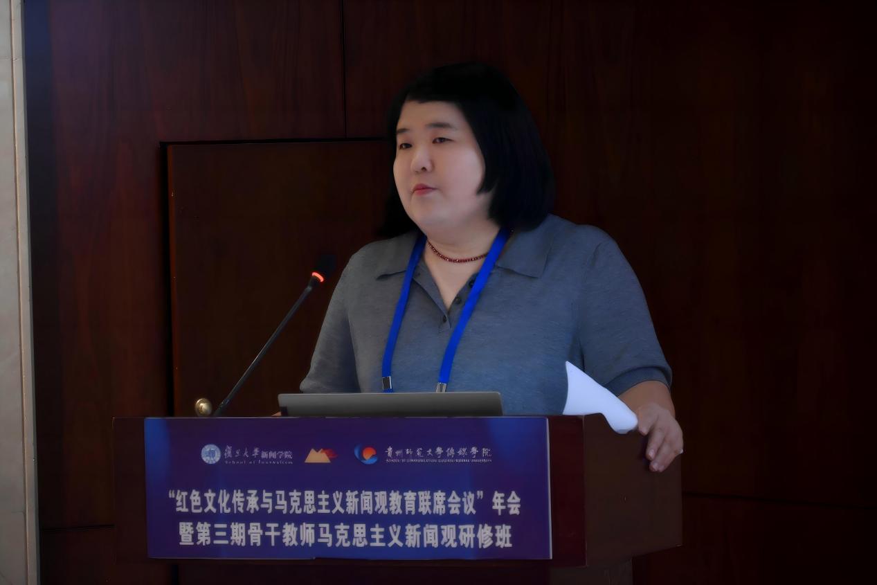 王青参加了为期4天的研修班培训。期间,她与来自各高校的学员一道,认真聆听了尹韵公、米博华、董天策、高金萍、韩立新、梅文慧、雷跃捷等学界和业界知名学者、专家的精彩授课,并在交流环节以“回归历史:马克思主义新闻观教育的基点”为题分享自己的学习心得。