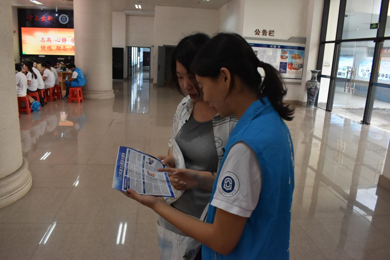 研究生志愿者向新生讲解防诈知识