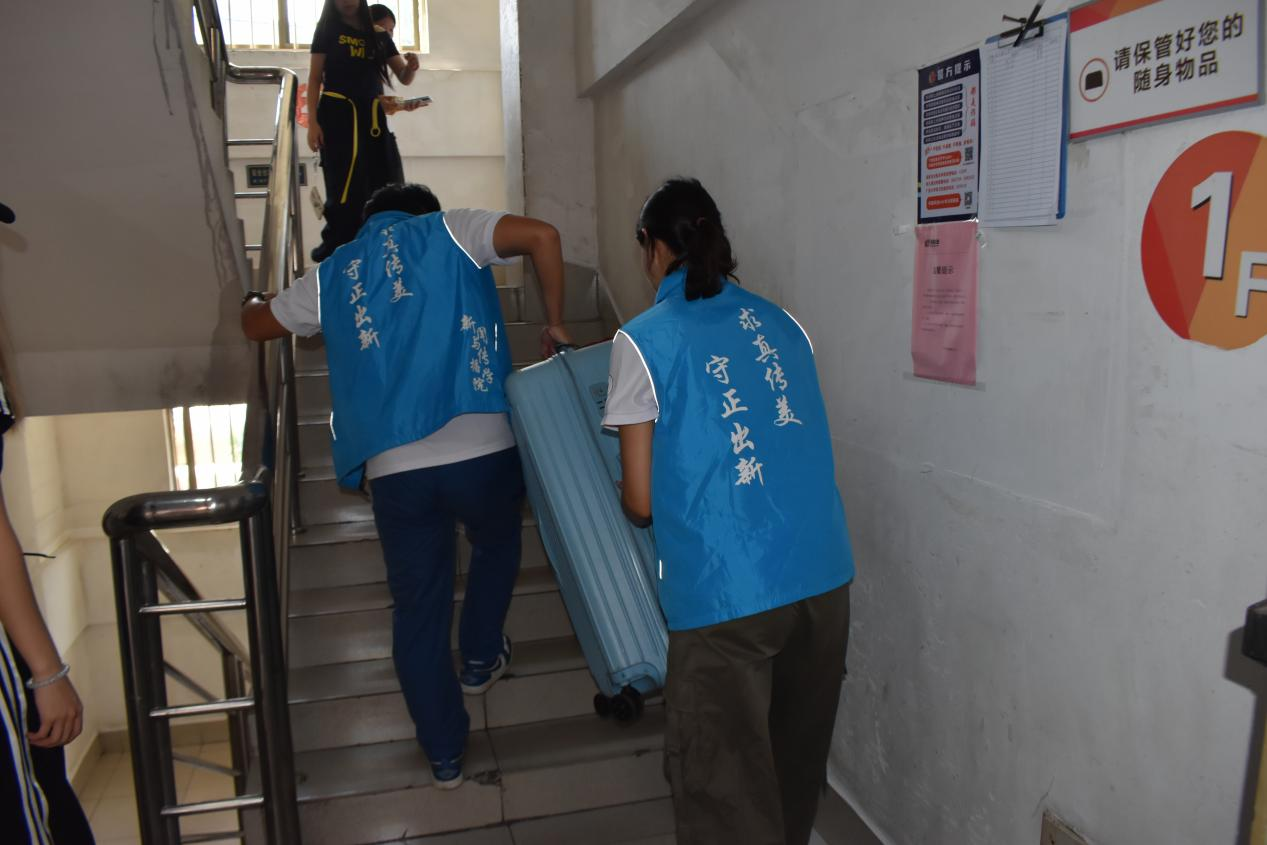研究生会志愿者帮助新同学搬运随身行李