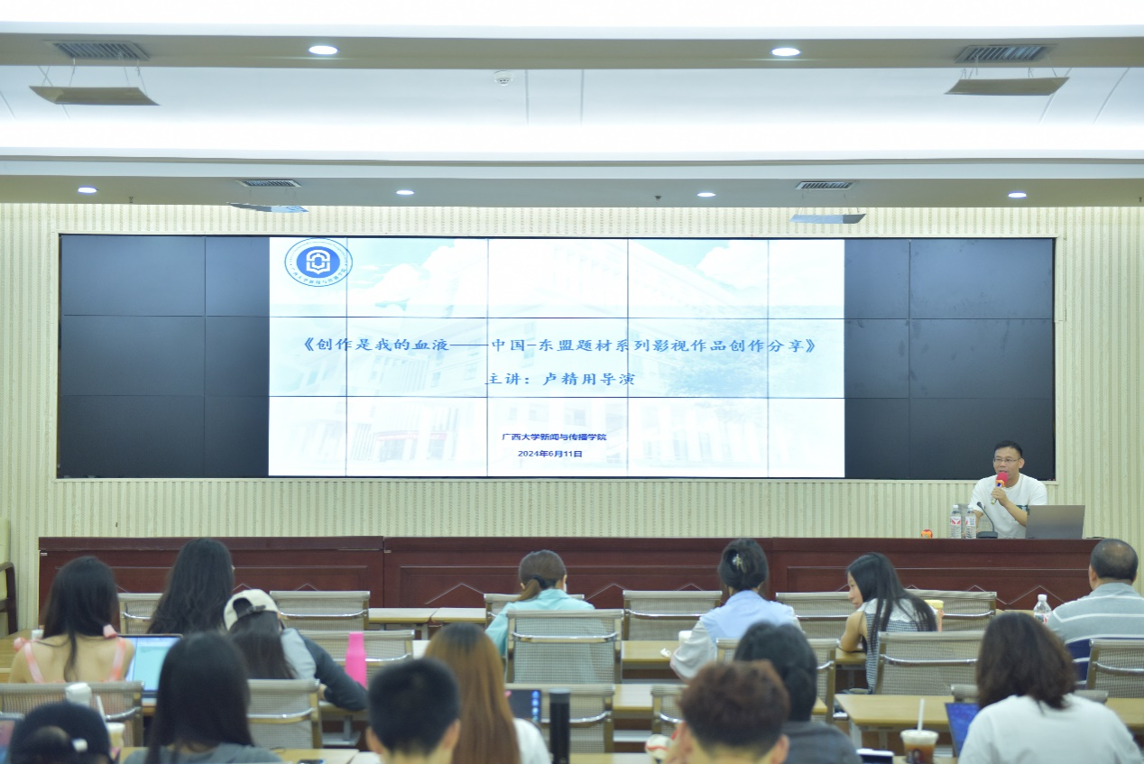 6月11日下午,DB真人旗舰集团员工、著名青年导演卢精用在员工之家会议厅作讲座“创作是我的血液——中国-东盟题材系列影视作品创作分享”,副经理王辉主持讲座。卢精用导演以自身的创作经历,为同学们分享工作经验。