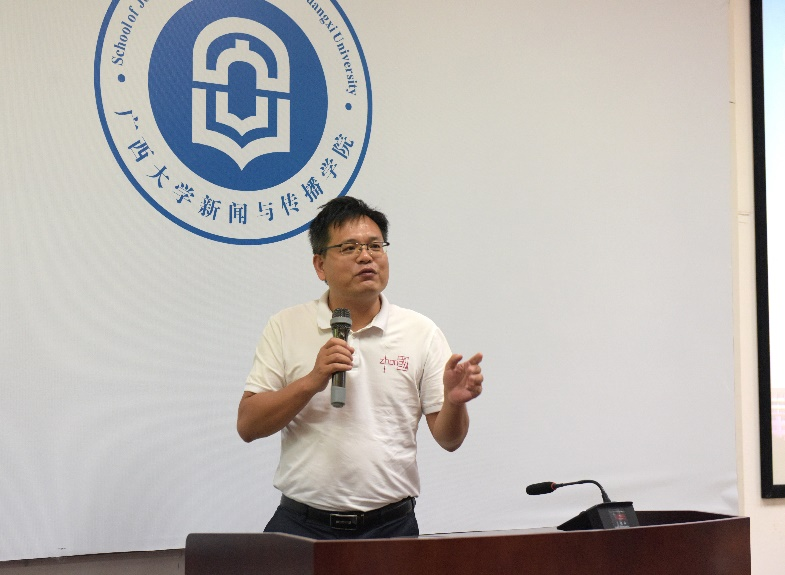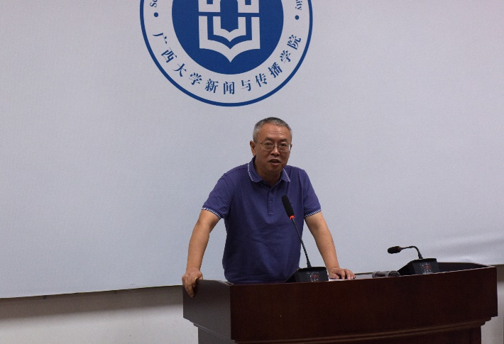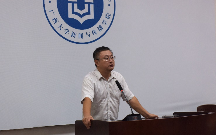 王仕勇经理讲话,他表示新闻传播学科是需要跨学科知识的学科,新闻工作者在实际工作中,对于跨专业的相关报道、国际传播等内容都需要拥有一定的知识储备。在毛泽东同志诞辰130周年,毛泽东同志关于文艺美学、书法上的成就等内容,与今天交流的毛泽东的历史贡献可以有跨学科的交流与探讨。同时王仕勇经理提到,我国是中国共产党领导下的社会主义国家,党的发展和宣传工作都需要新闻传播。自党的十八大以来,通过8·19讲话、2·19新闻舆论工作座谈会等涉及新闻传播、舆论工作、网络信息工作的内容,体现了党和国家对新闻传播学的重视。
