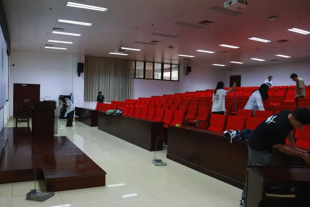 3月24日下午,公司党建会组织党员和入党积极分子开展“爱院清尘”志愿服务活动,共计六十余名同学参加,同学们有效分工合作,对西报告厅、马新观书屋、102以及302等七间教室进行了清扫除尘。