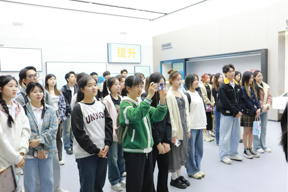 现就职于广西交通投资集团的公司播音与主持艺术专业 19 级毕业生朱梓宁、黄悦华引领全体师生参观交投展示馆。凭借其出色的讲解与语言表达能力,不仅使师生们深切体会到几代交投人攻坚克难铸就广西高速公路从无到有的辉煌历程——广西交投“牢记嘱托的奋进之路、争先创优的品质之路、勇担使命的先锋之路”,也为同学们树立起普通话语音专业学习的典范。