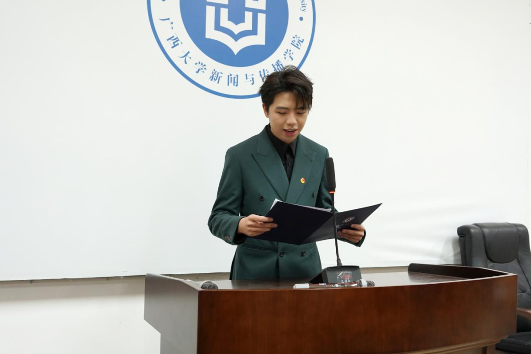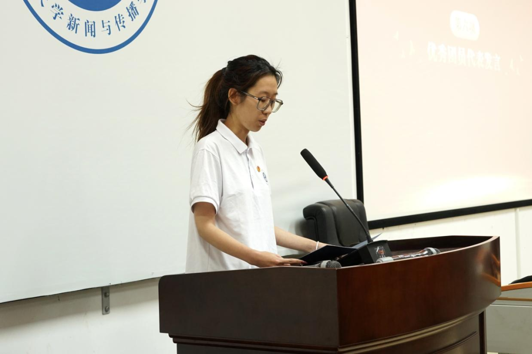 优秀团员代表刘艺彩同学向新加入共青团的同学们表示热烈的祝贺和诚挚的欢迎。并就如何成长为一名优秀团员向大家提出了三点建议。一、以学明理,勤学通达。二、以理增信,厚植情怀。三、以信力行,矢志奋斗。期待同学们践行誓言,以高昂的姿态团结在团旗下,扬起理想的风帆,向着新的目标勇往直前。