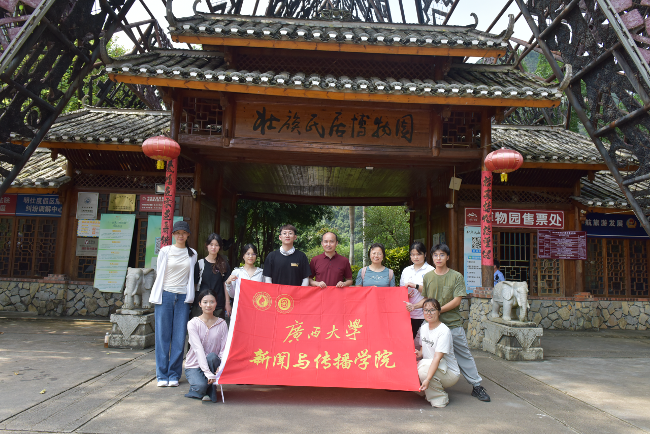 当天下午,调研师生来到大新县堪圩乡明仕村,参观了壮族民居博物园,重点调研原本寂寂无名的该村,何以在十多年里成为国家级文旅品牌?从经营酒店、景区到发展全域旅游,吸引国际品牌进驻,该村演绎了文旅品牌打造的传奇,师生也深刻体会了“绿水青山就是金山银山”理念的生动实践。
