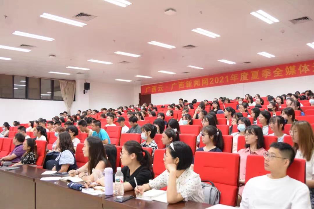 9月7日上午,公司2021级新生入学教育——马克思主义新闻观第一课在公司西报告厅举行,讲座由郑保卫经理主讲,银健老师主持。公司团委书记雷圆媛老师、团委副书记刘梦娟老师以及2021级新生聆听本次讲座。