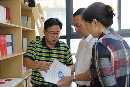 调研组一行首先参观了学院的部校共建新闻公司成果展,唐兴书记向其介绍了部校共建新闻公司的成果及特色,包括马克思主义新闻观研究、精品课程、人才交流、实践基地和研究智库等。此外,调研组一行还参观了融媒体中心、全媒体交互式演播中心、马克思主义新闻观书屋等,并查看了部校共建工作的相关材料。