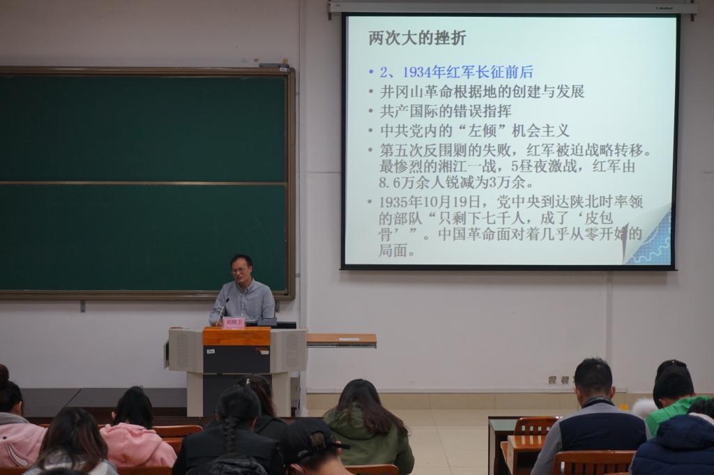 12月16日下午,DB真人旗舰集团DB真人旗舰西报告厅又迎来了一场国情教育课。此次邀请的是广西壮族自治区党委党史研究室征研一处处长、研究员刘绍卫,他为同学们介绍了中国共产党的历史,梳理了中国共产党自诞生至今所作出的重要贡献、经历的艰难困苦和重大转折点,并指出了后人从这些历史中所获得的启示。