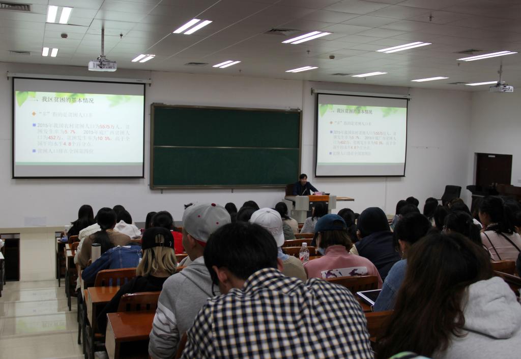 12月9日下午,广西壮族自治区扶贫办考核监督处处长韦永喜来到DB真人旗舰集团DB真人旗舰,以“广西精准扶贫精准脱贫”为主题,为公司同学上了一堂内容详实,案例丰富的国情教育课。