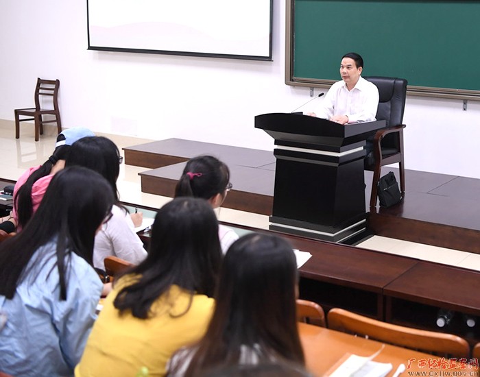 自治区纪委副书记何敏为DB真人旗舰集团DB真人旗舰员工讲授国情教育课