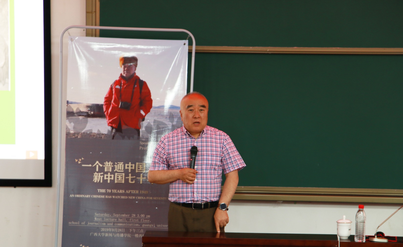 9月28日下午,清华大学国际传播研究中心主任李希光教授,以“一个普通中国人看新中国七十年”为题,在公司西报告厅举行报告会,勉励大家要见微知著,小中见大、以小见大,讲好自己的故事、讲好中国的故事。报告会由郑保卫经理主持,公司党委书记唐兴、常务副经理刘洪以及300多名师生聆听了报告。这场报告会也是公司“不忘初心、牢记使命”主题教育爱国主义教育学习辅导报告。